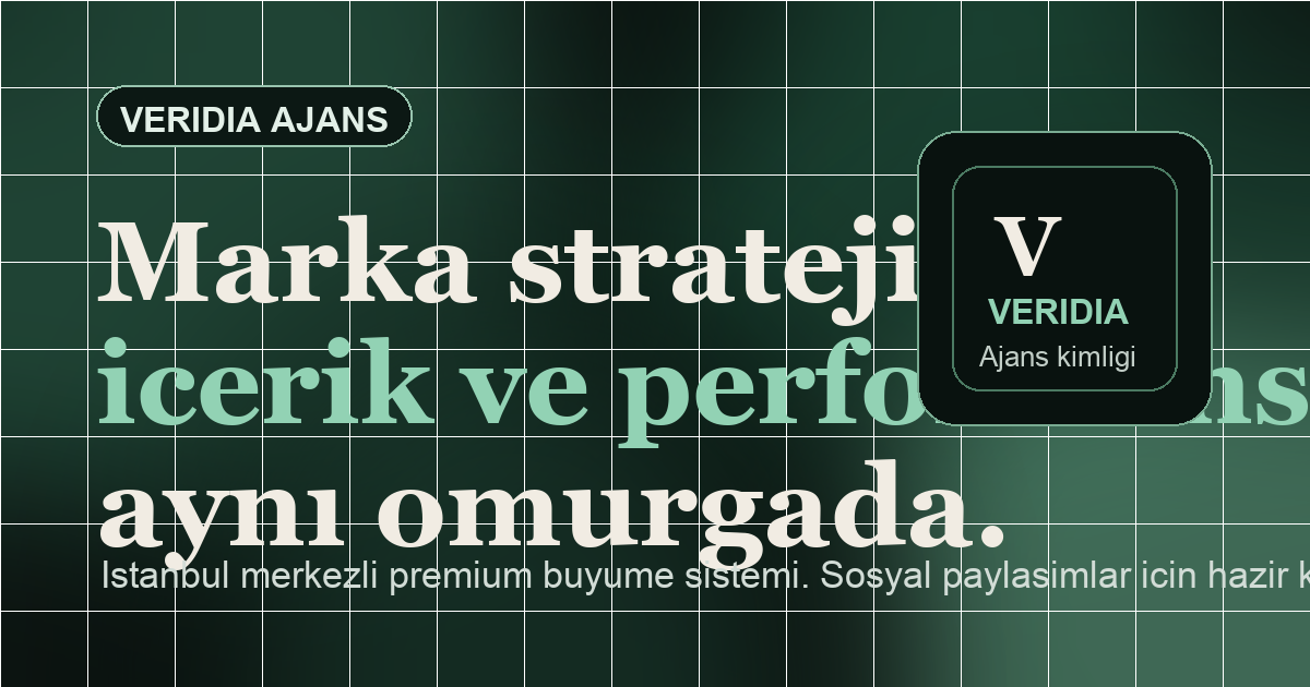 Veridia, İstanbul merkezli bir dijital pazarlama ajansı olarak marka stratejisi, sosyal medya yönetimi, içerik üretimi ve performans pazarlama süreçlerini tek bir çalışma planında toplar.